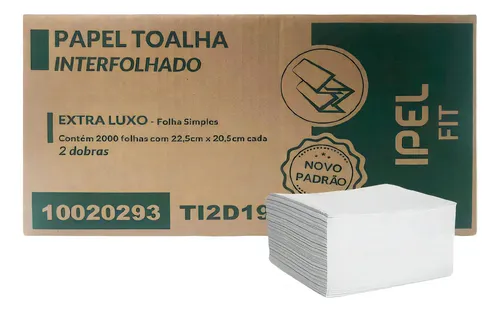 PAPEL TOALHA 2D C/2000 22,5 X 20,5 F.SIMP. IPEL 19GR FIT 100% CEL.